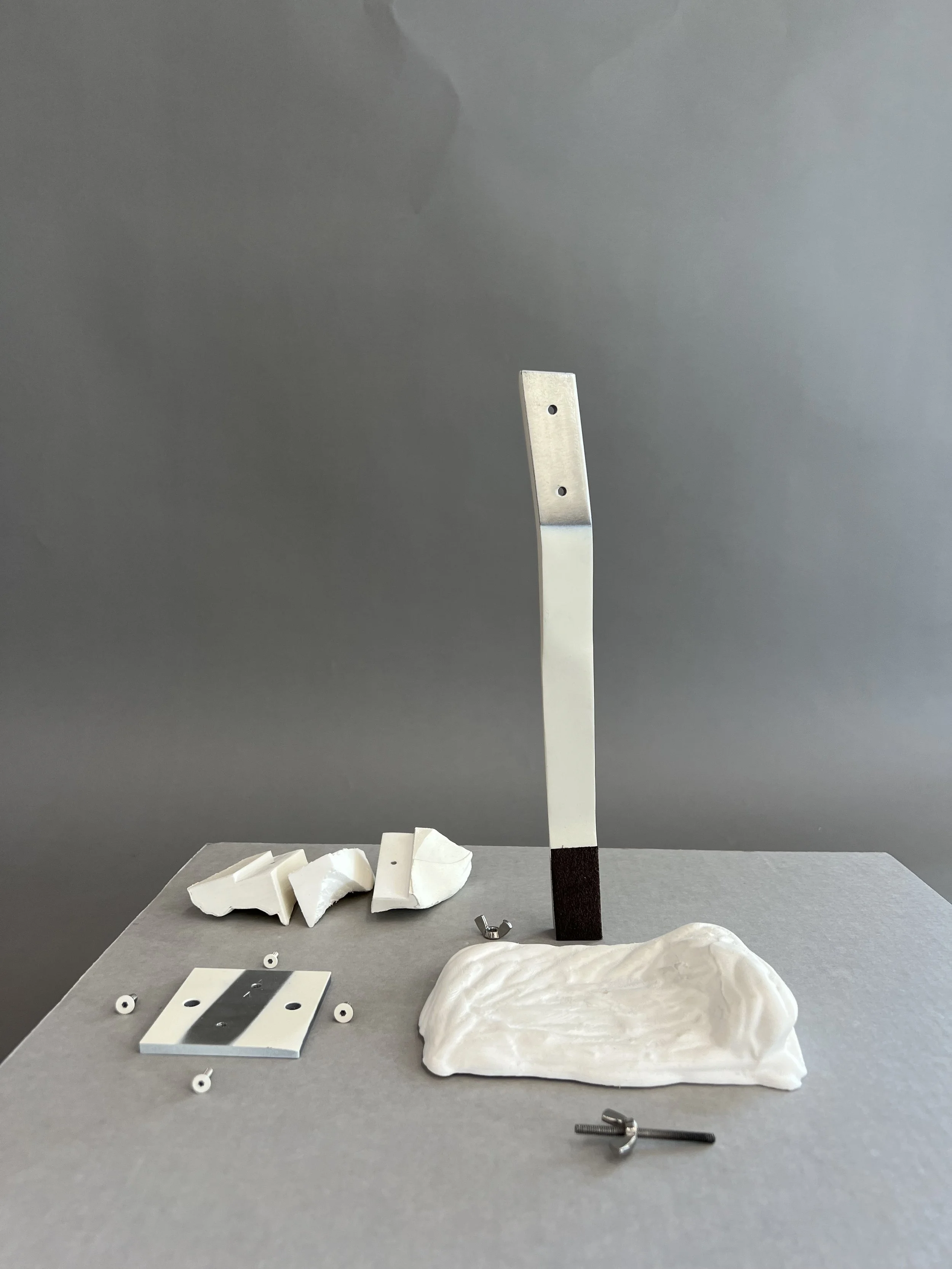My final project was to make a mount for any object. Being a huge Star Wars fan, I chose a Boba Fett helmet made by Disney. All parts were cut, painted, and upholstered by hand. A pivot piece attached to a steel post allows for the helmet to be customized to whatever angle.